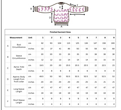 Finished Bust sizes in cm & inches