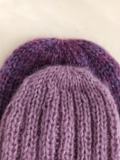 This hat features a folded brim and a body worked entirely in a 2x2 rib pattern. The crown is shaped with four decrease rounds, using both knit and purl decreases.