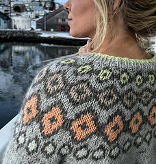 Irma is best knitted in cheerful colors – preferably using your leftover yarn scraps in the yoke!