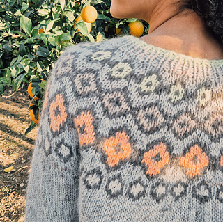 Irma is a light and colorful sweater, worked from top to bottom with a multi-colored yoke.
