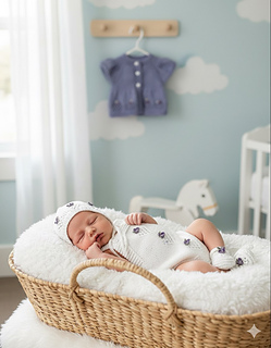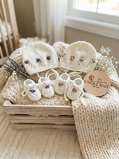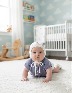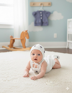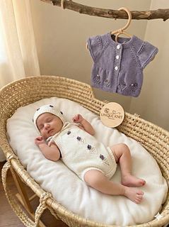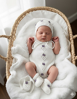 This pattern provides the instructions to make all 4 pieces and is suitable for a 0-3 month-old baby or a 16 - 22” Reborn doll, the size depends on the needles and yarn used.