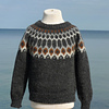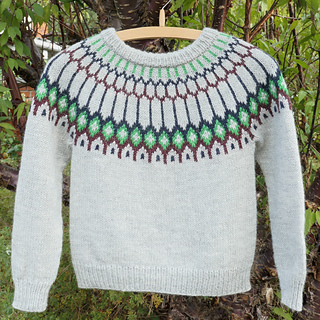 The sweater is worked ’Top-Down’, beginning at the top with increases down the patterned yoke. The sweater is initiated at the top of the yoke with a provisional cast-on, making it possible to adjust the neckband.