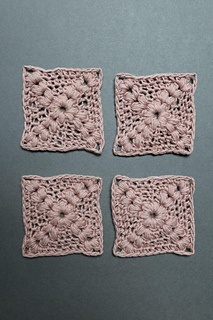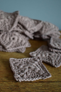 Gauge/tension: Blocked gauge for squares is 6.5cm x 6.5cm/ 2.5” x 2.5”.