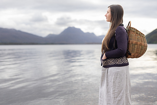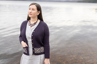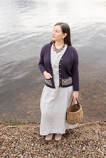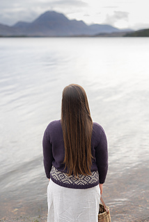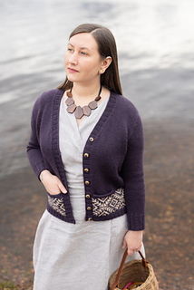 This elegant yet comfortable design features stranded colourwork, inset pockets, and top-down, set-in sleeves.