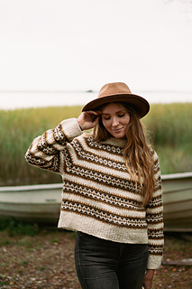 Islet Stripes Sweater is a top-down raglan sweater with stranded colorwork stripes that resemble small islands on a calm sea. Knit seamlessly from the neckline down, it’s an easy and enjoyable project with just enough colorwork to keep things interesting.