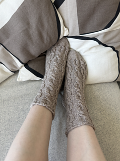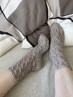 Wrap your feet in timeless comfort with Isola, a pair of elegant cabled socks designed to bring both texture and tranquility to your knitting needles. The repeating cable pattern flows seamlessly from cuff to toe, giving these socks a beautifully balanced structure and a snug, flexible fit.
