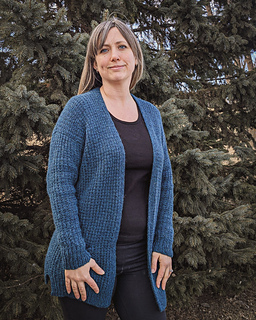 This cozy cardigan is as enjoyable to knit as it is to wear! The gorgeous broken rib texture is created by alternating all knit rows with knit one purl one rows, so there are no all purl rows