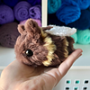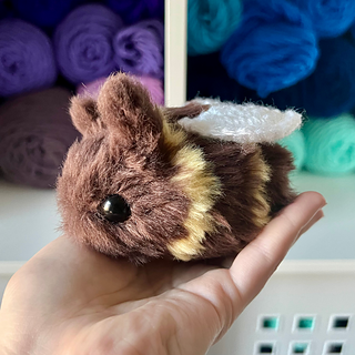 This pattern will work with almost all yarn types, just be sure to adjust your hook and safety eye size accordingly! Using a non-faux fur yarn will result in a very different looking plushie.