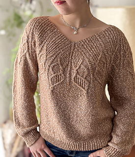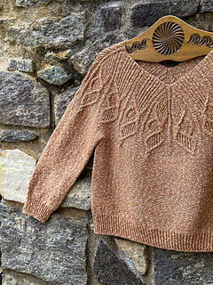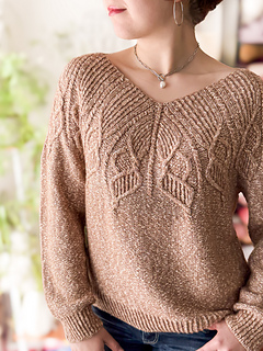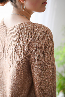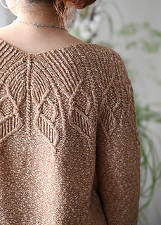 Iverine is a seamless, top-down sweater featuring a circular cable yoke and a V-neck. The design is built around a repeating motif that quickly becomes intuitive and enjoyable to knit.