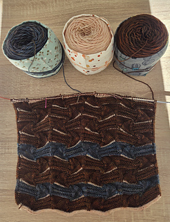 Jersey bloqué avec des aiguilles de 3 mm : 10 cm x 10 cm = 26 m x 38 rangs.