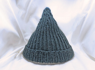 This is a simple, one size fits all hat. It is a beanie that is knit in the round in twisted rib with a point at the top, making it perfect for gnomes and humans alike!