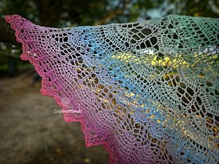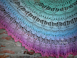 Wzór na szydełkową, półokrągłą chustę. Wzór jest przeznaczony dla osób średniozaawansowanych, zawiera schemat graficzny podzielony na części. Każdy rząd jest niepowtarzalny. Zużycie włóczki zależy od wielkości szydełka oraz sposobu przerabiania (ściśle lub luźno)- chusta wymaga motków o długości ok 1400-1600m.