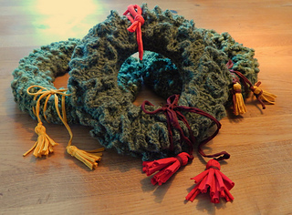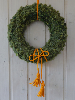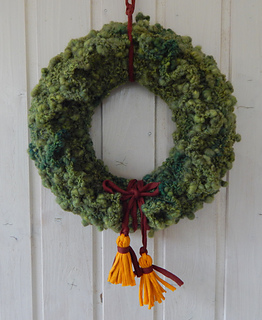 The “Jane Austen Wreath” is quick and easy to knit. There are 3 variations, all included in this pattern. A ready-made polystyrene wreath is used as the base, but you can also use a straw wreath. Finally, the decorative cord with tassels is made and tied around the wreath.