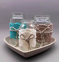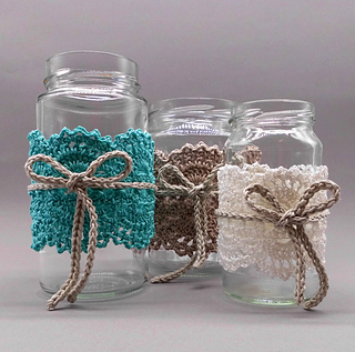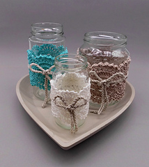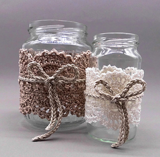 The border in the Shabby style can be transformed again and again versatile and can be crocheted for any straight glass in any size (for example, lanterns, jam, vegetable or sausage jars) and fits not only to the country style, but also to modern furnishings.