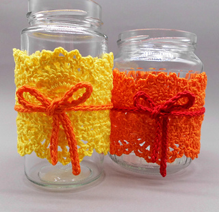 Can be crocheted in all sizes, for all used jars/screw jars (e.g. jam jars, fruit jars, vegetable jars, sausage jars).