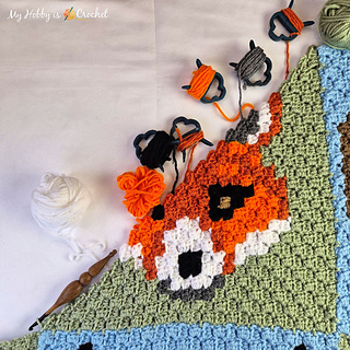 The JAYG C2C Fox Block is the 8th animal block of the Join-As-You-Go (JAYG) Forest Animals Blanket CAL.