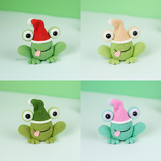 Free pattern for the Christmas hat and crochet KIT here https://lennutas.com/crochet-frog-free-pattern-video/