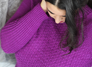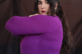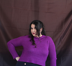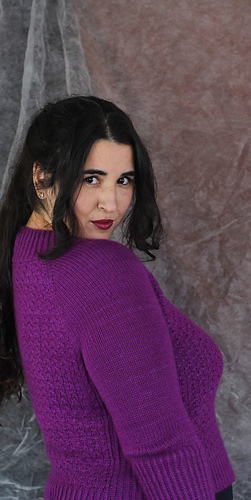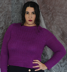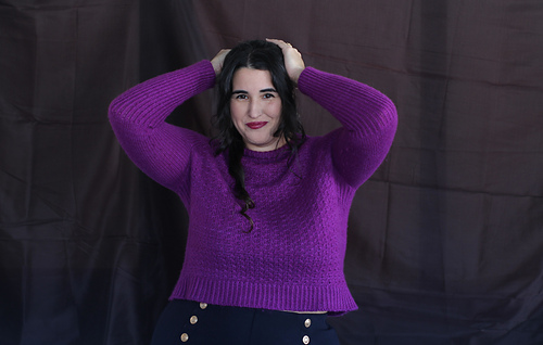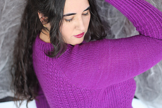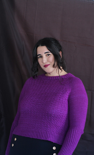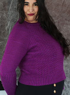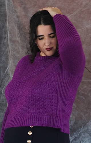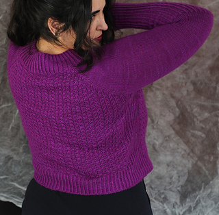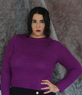 Es un jersey con aumentos ranglán, tiene una textura con cruces muy sencillos, no es necesario usar agujas auxiliares, pero explicaré ambos métodos, con y sin aguja auxiliar. El jersey tiene dos versiones, una para mujer, con dos tipos de copa de pecho y otra versión para hombre. La versión de hombre no tiene textura en la espalda y no tiene elástico en los laterales.