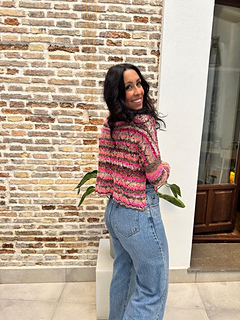 Trabajaremos en plano, tejiendo las piezas por separado y cosiendo posteriormente hombros, costados y mangas, aunque las mangas se pueden tejer en redondo, recogiendo puntos después de coser hombros y lados.