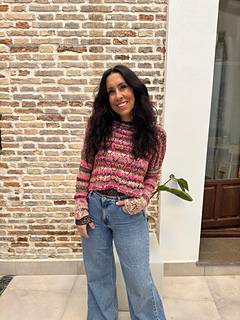 Para tejer este diseño, trabajaremos todo el tiempo a doble hebra, llevando una hebra de Stella y otra de un ovillo de popurrí que crearemos antes de comenzar a tejer.