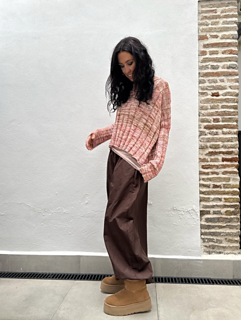 Este jersey se teje en redondo comenzando por el bajo y tejiendo hasta llegar a las sisas, donde separaremos las piezas y trabajaremos en abierto dando forma al cuello y los hombros.