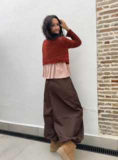 Este jersey se teje en redondo comenzando por el cuello, dando forma de ranglán y separando las piezas al llegar a las sisas. Continuaremos tejiendo el cuerpo en redondo.