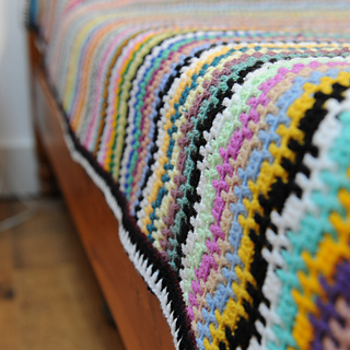 My blanket fits onto a double bed but the size is very easily adjusted by altering the starting chain; the pattern repeats every 16 stitches so virtually any size blanket is possible. A range of suggested blanket sizes giving the starting chain required and approximate yarn quantities are calculated for you.