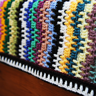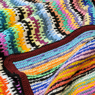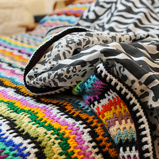 This cozy blanket is worked using the mosaic overlay technique. Only one colo(u)r of yarn is used for each row, there are no complicated mid-row colour changes. Each row is written out in full, and a clear chart (with “X” notation) is also included for those who prefer to work from charts.