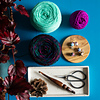 This pattern is made with 2 full skeins and 1 mini skein of fingering weight yarn. The pattern includes a table, included in clue #0, to help you customize your shawl in one, two or many different colors!