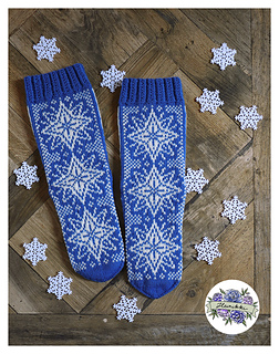 Johtotähti-sukat neulotaan kirjoneuleena keskipaksusta sukkalangasta. 8-sivuinen PDF-ohje sisältää hyvät kaaviokuvat ja selkeät sanalliset ohjeet näyttäviin kirjoneulesukkiin.