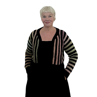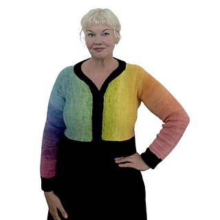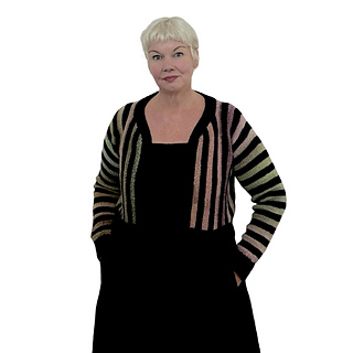 A sideways sweater, knit from the centre out to each cuff. Jolly Cardy is designed to make the most of a festive yarn mini-skein set and would also make a fun scrappy project or keep it simple with one colour. Work the 6-row stripe repeat or knit on, changing colours as inspiration strikes. The pattern offers a choice between two body lengths and a sleeveless or sleeve option. A deep twisted ribbing hem adds contrast to your Jolly Cardy.