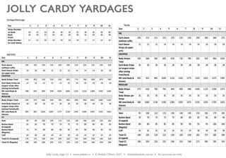 See Yardages Table (in images) for detailed yardages.