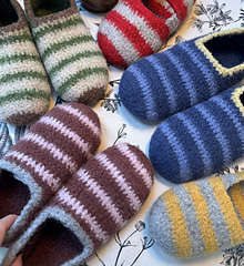 Cozy, cheerful, and oh-so-cute—Jolly Stripes Slippers are your new favorite at-home companion! This crochet pattern shows you how to make wool slippers that are designed to be felted, creating a soft-yet-sturdy finish perfect for lounging or gifting this holiday season.