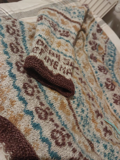 Villapaita on neulottu ylhäältä alas ilman näkyviä saumoja.