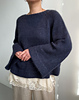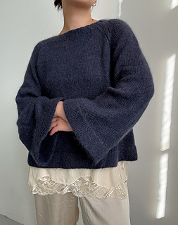 Joo Sweater is an oversized sweater inspired by hanbok, Korea’s national attire. It is knitted from the top down with raglan increases, and short rows are worked in the neck to create the shape of the neckline. The sleeves are knitted in stockinette stitch while evenly spaced increases are worked, which gives them their wide shape. The sleeves and body are finished with a folding edge and stockinette stitch, which is folded inwards and sewed in place at the end.