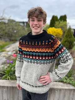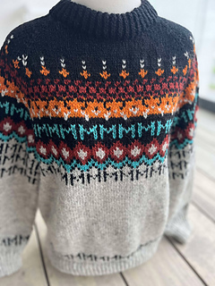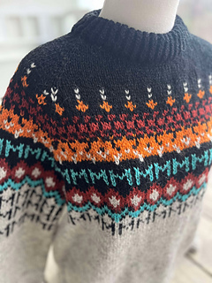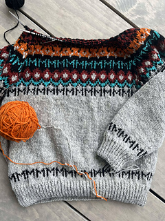 The Jor sweater is knitted from the bottom up. It is worked in the round, which means that instead of knitting back and forth in rows, you will work in continuous circles, creating a seamless garment. This method eliminates the need for side seams and gives the sweater a smooth, even finish.