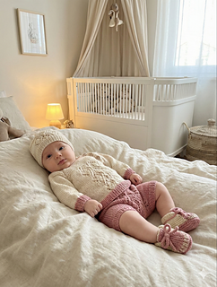This pattern provides the instructions to make all 4 pieces and is suitable for a 0-3 month-old baby or a 16 - 22” Reborn doll.