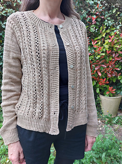 Joséphine is an elegant, feminine cardigan with Italian armholes, knitted from the top down to the ribbed hem. A lace pattern featuring cables decorates the front panels. This pattern is explained using charts. Video tutorials are available to help you knit specific techniques.