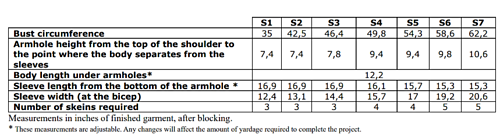 Number of skeins required : 3/3/3/4/4/5/5