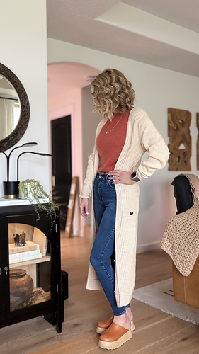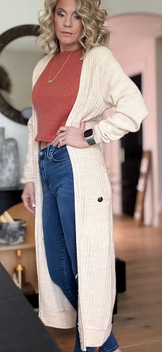 Do you enjoy knitting wonderfully fitting sweaters from the top-down with no seaming? Me too! The Jovis Duster is a seamless sweater, worked from the top-down in a delightfully easy to work faux rib pattern with an I-Cord edge, stockinette sleeves, and a picked up, ribbed front band. There’s a lot going on in this knit, and in the end, you have a beautiful statement piece that will keep you warm from top to bottom!