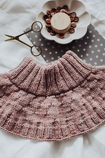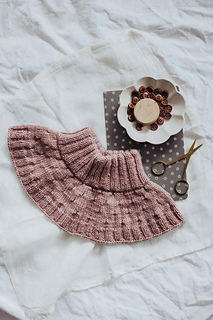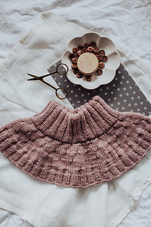 This collar is knitted in the round from top to bottom. The increases in the round yoke are worked with yarn overs every fifth round, forming a lace pattern.
