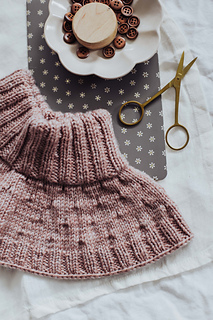 The gauge for this collar is 24 stitches over 10 cm (4”). For me, this corresponds to a needle size of 3.5 mm (US 4).