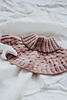 Dieser Kragen wird in Runden von oben nach unten gestrickt. Die Zunahmen in der Rundpasse werden in jeder fünften Runde mit Umschlägen gearbeitet und bilden ein Lochmuster.