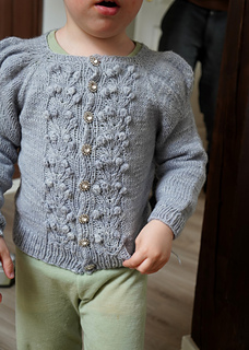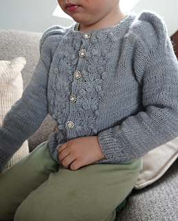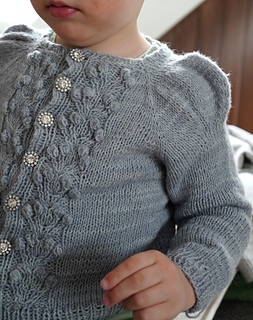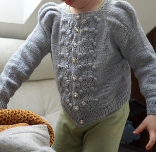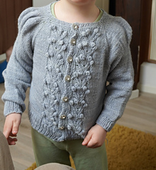 The Jr. Forest Berry jacket is the girls’ version of my best-selling ladies Forest Berry Jacket – my first design! It’s a 1940s-inspired cardigan with puff shoulders, a feminine yet simple silhouette, and a decorative berry-pattern running down the front.