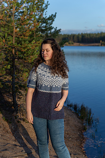 There are eight sizes calculated in the description. The girth of the chest of the finished product is from 89cm to 131cm. You can knit the length of the product as you wish. The sleeve of the jumper is short, but you can knit the sleeves yourself, take into account the additional consumption of yarn in this case.