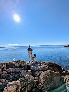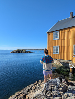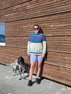 The Salmon Yoke Sweater is part of the Island Series: a collection inspired by the sea and its creatures. Pair it with the Sjark Sweater, Seagull Sweater, or Crab Sweater for a full maritime wardrobe.