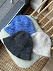 The blue version is the main one in this pattern, with a structured bind off and a short, snug body that fits more like a beanie on top.