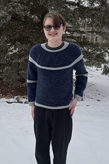 Jupiter is a dynamic, stripe-driven sweater featuring short row stripes placed around the neck, body, and edges, echoing the flowing bands of the planet it’s named after.