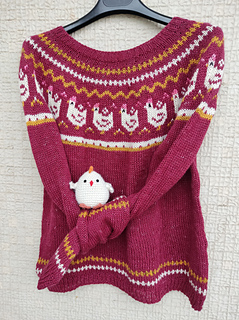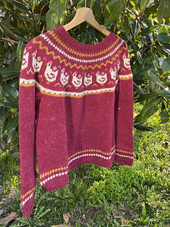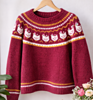 This sweater is worked seamlessly from the top down. First the stranded yoke is worked, then short rows are added to shape the back of the shoulders. The body and sleeves are separated and worked in the round.