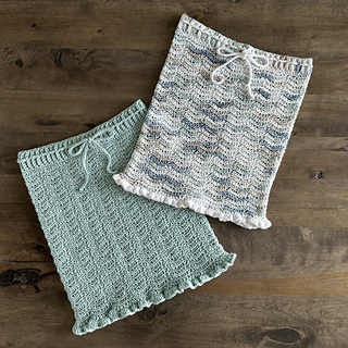 Your amount of yarn will vary with your own measurements. I made two skirts to fit a size small waist, and used approximately 520 yards of I Love This Cotton for one, and approximately 597 yards of Big Twist Living for the other.